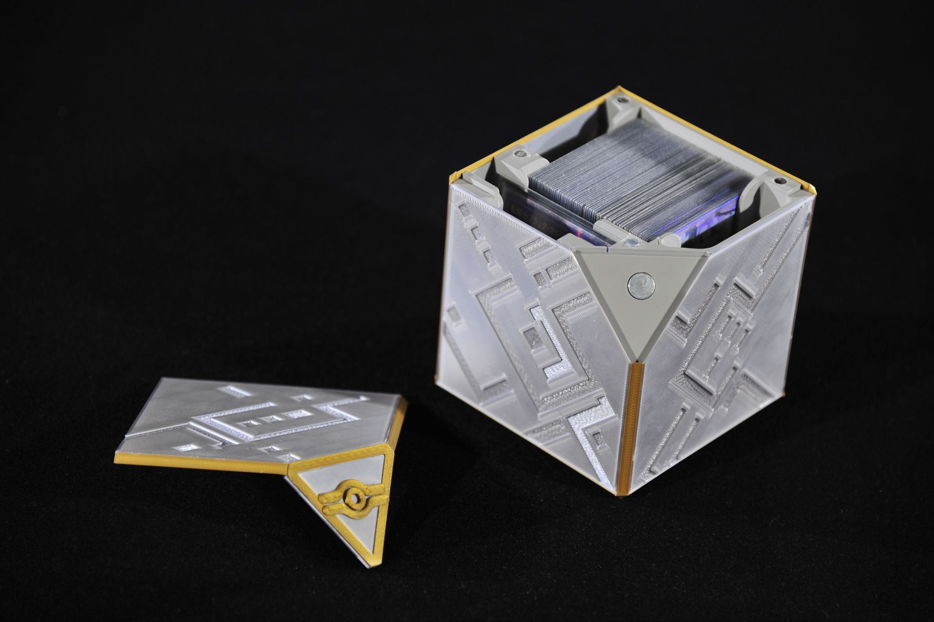 主题卡盒;银色PLA、黑/金PETG 多材料;2025年6月完成。