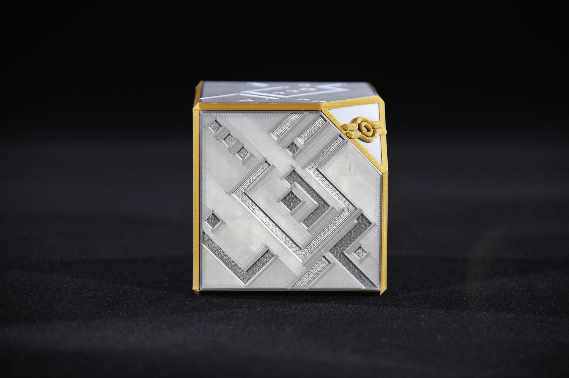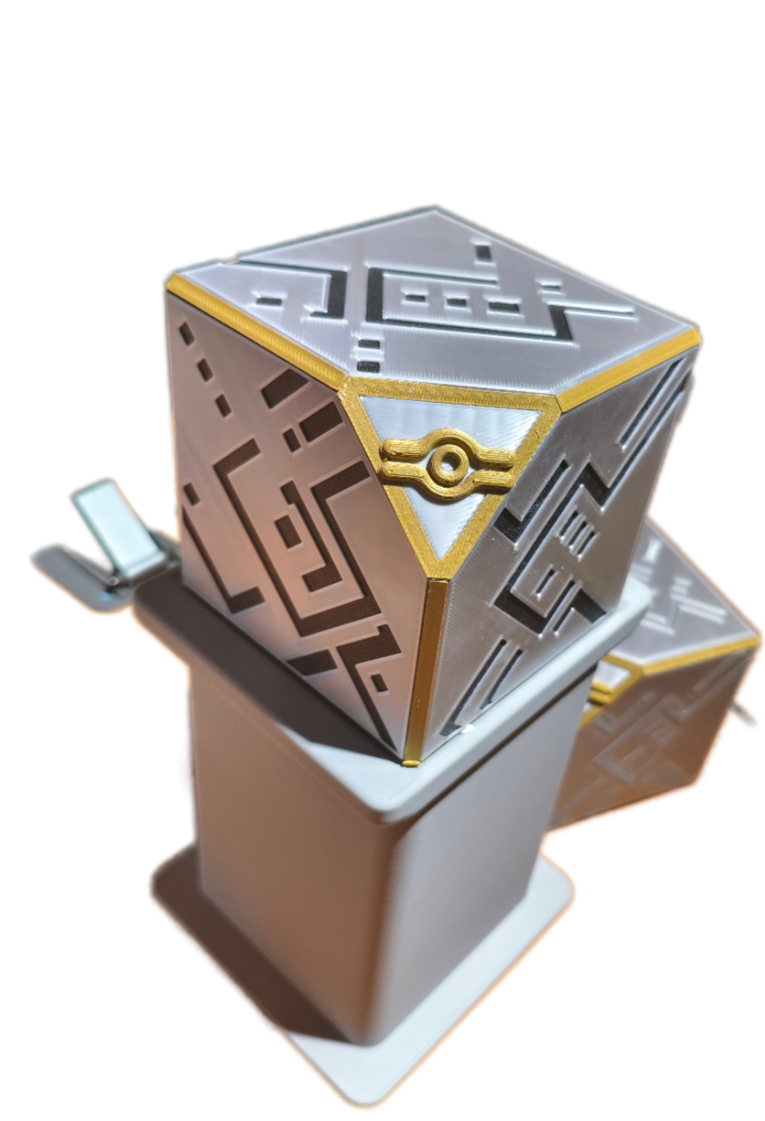 FDM 打印机制作;银色 PLA + 黑色/金色 PETG 组合打印。